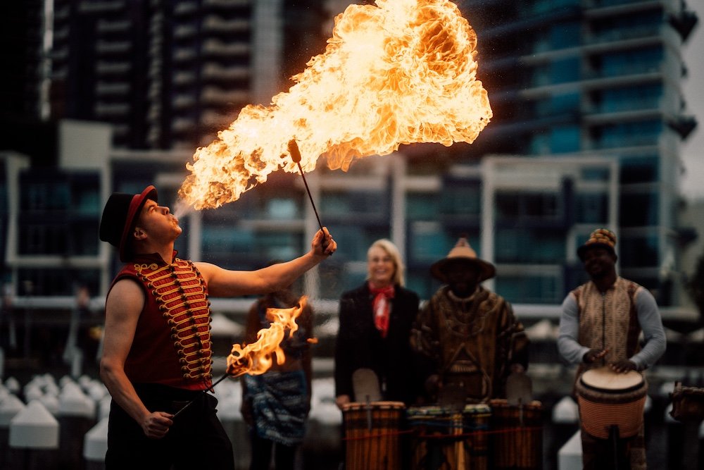 At Asia Street Food Festival, prepare to be mesmerised by world class fire manipulation featuring martial arts, dance, circus stunts and spectacular costumes by Chris Morant. The show begins with slow hypnotic movements and builds to a spectacular fiery finale. The components of the show are by fusing martial arts, dance, circus stunts, and themed costumes. From eating, blowouts, opening fans, Samoan fire knifes and cross staffs to amazing fire whips, this has to be seen to be believed!